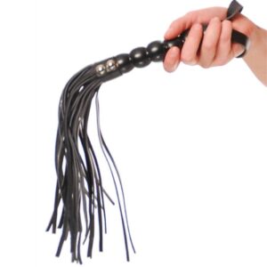 O cabo de contas de madeira tem uma alça prática e as tranças têm 20 centímetros de comprimento, fáceis de usar. A pulseira e as tranças são feitas de vinil macio e fácil de limpar, cujas pontas proporcionam a quantidade certa de picada.